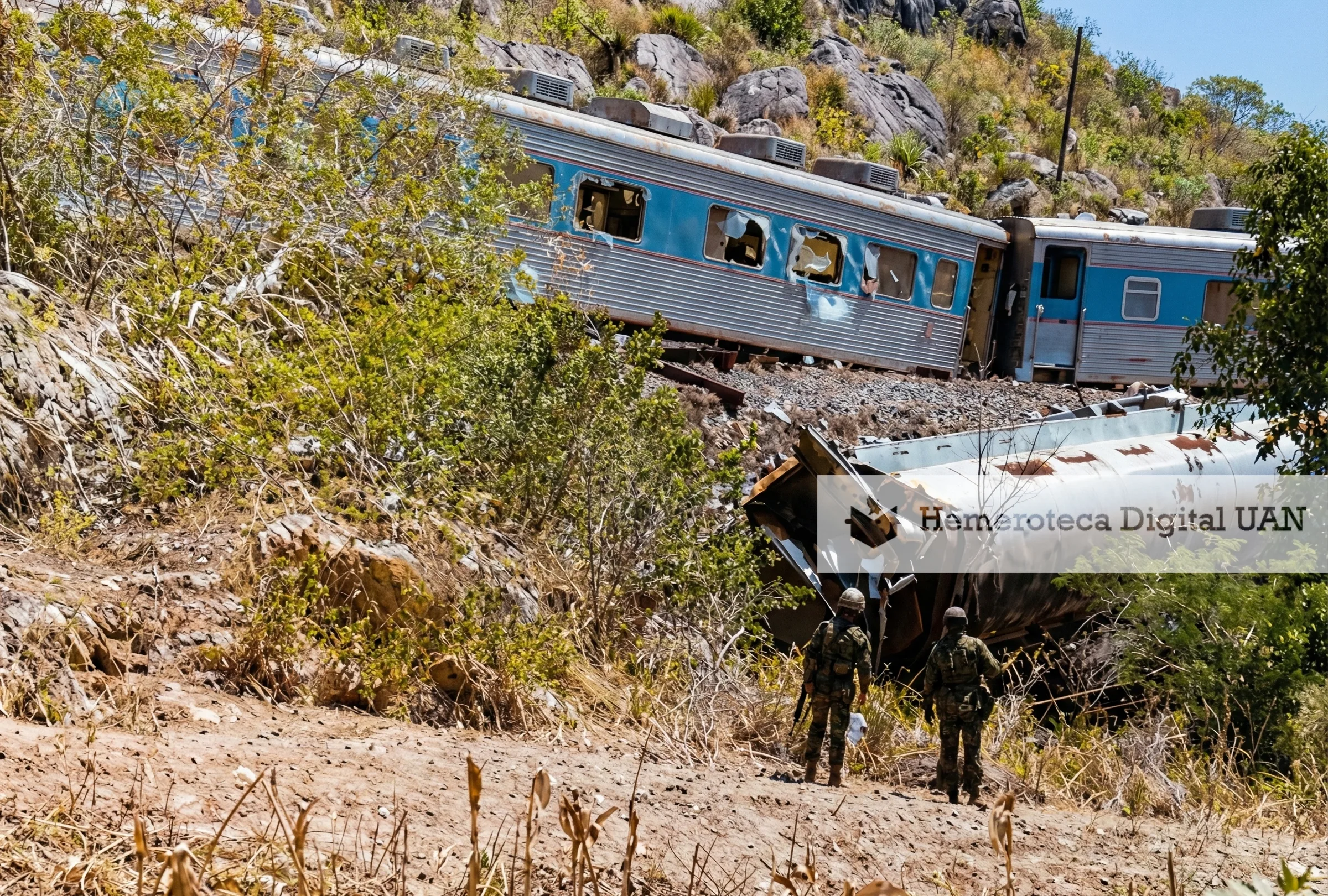 Referencia: Castrejón Murillo, U. (2026). Descarrilamiento del «Tren Bala» el 11 de julio de 1982 [Texto y fotografías editadas digitalmente]. Colección fotográfica, Hemeroteca Digital UAN.